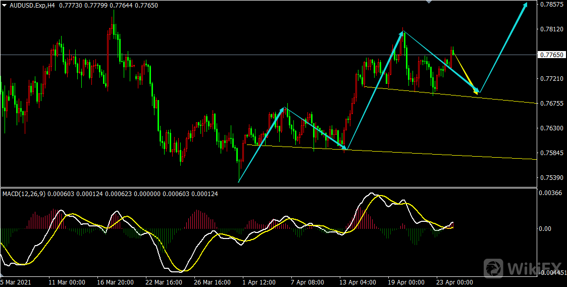 从澳元兑美元4小时走势来看,澳元兑美元目前短线波段和之前的类似,支撑比较明确,整个形态重心上移,极可能会向五浪发展,目前短线再回落至支撑处可以考虑接多长持。