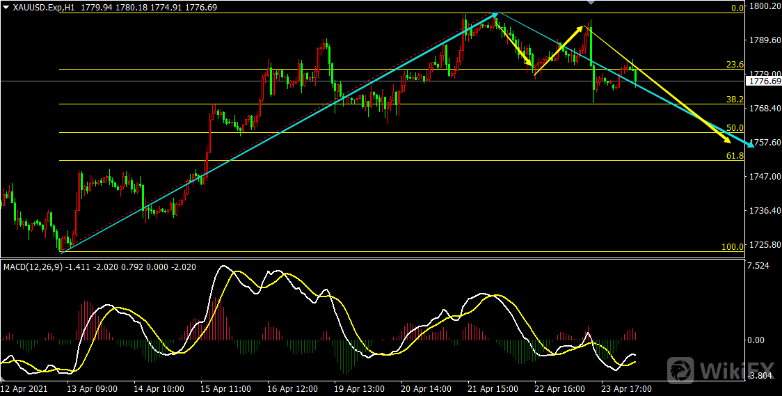 上周末鲍威尔称,由于经济强势复苏,美国今年可能会出现“略高”的通胀,但是美联储承诺将通胀控制在一定范围之内。此外,美国国债标售需求良好,投资者抛售美元购入美债,给美元造成了短线压力。美国财政部上周进行了20年期国债标售,得标收益率为2.144%,投标倍数为2.42。与此同时,黄金本月ETF资金流出的动能已经放缓,4月每日的流出量为1.5吨,较3月份近6吨的速度缓和许多。市场预期下半年ETF资金会转为流入,且金价将再次上涨。因美联储坚持长期超宽松货币政策,债券收益率和美元应该会自年中开始回落,所以届时阻力就会变成助力。年底之前黄金有望重回每盎司2000美元的高位。