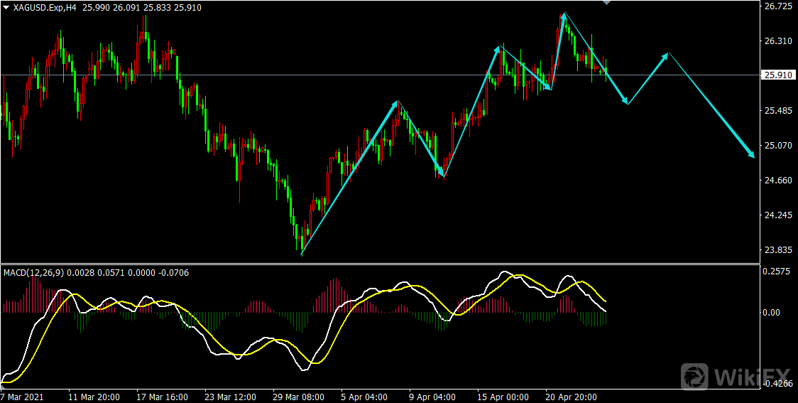 从国际白银4小时图来看,白银已经进入调整行情,后期将是相对应五浪拉升的调整形态,短线主要方向将是做调整空头。