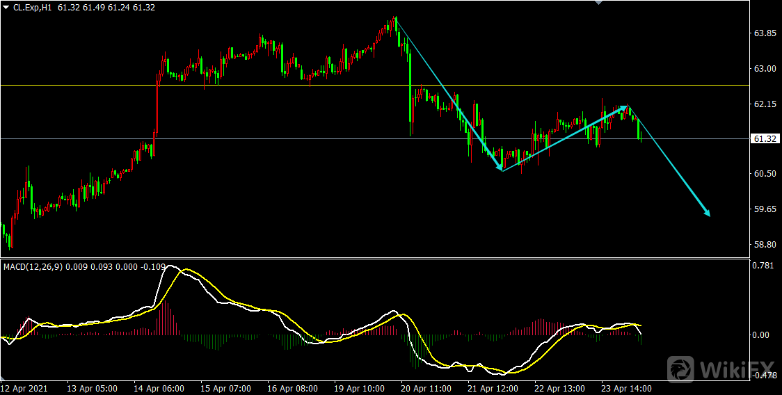 从WTI原油1小时图来看,原油以目前的上涨态势恐很难上破压力,加上前方的下跌强势,极可能接下来要走出下跌N字形结构,短线不利于多头。