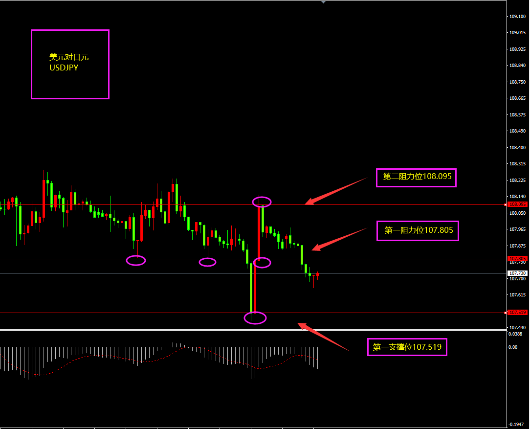 技术点评:天图美日收小阴线,价格继续回落,但下影较长,空头走弱遭受底部多头逆转,短期MACD虽位于0轴之下,但并未大幅走弱,日内更多以逢低看多为主。小时图美日期间价格有所回落,MACD位于0轴之下,空头占优,但底部有大阳线产生,短期大阳线开盘价不破,日内更多以逢低看多为主。