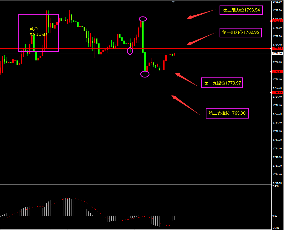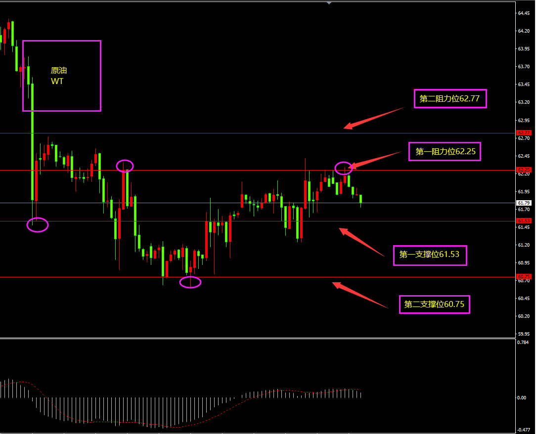 策略分析:第一支撑位附近轻仓看多,如有大阴线跌破第一支撑位则转为观望。