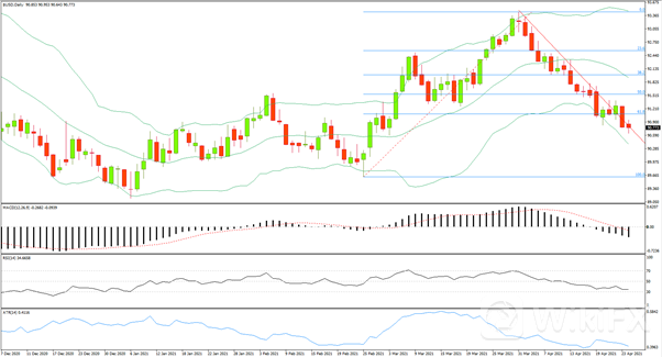 4月26日美元指数在八周低位附近企稳,在美联储政策决定公布前,美元空头交投较为谨慎