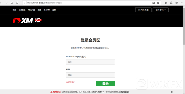 步骤一:登录XM官网会员区 – https://my.xm-direct.com/cn/member/login(复制链接至浏览器打开),输入真实交易账号&密码,点击【登录】。
