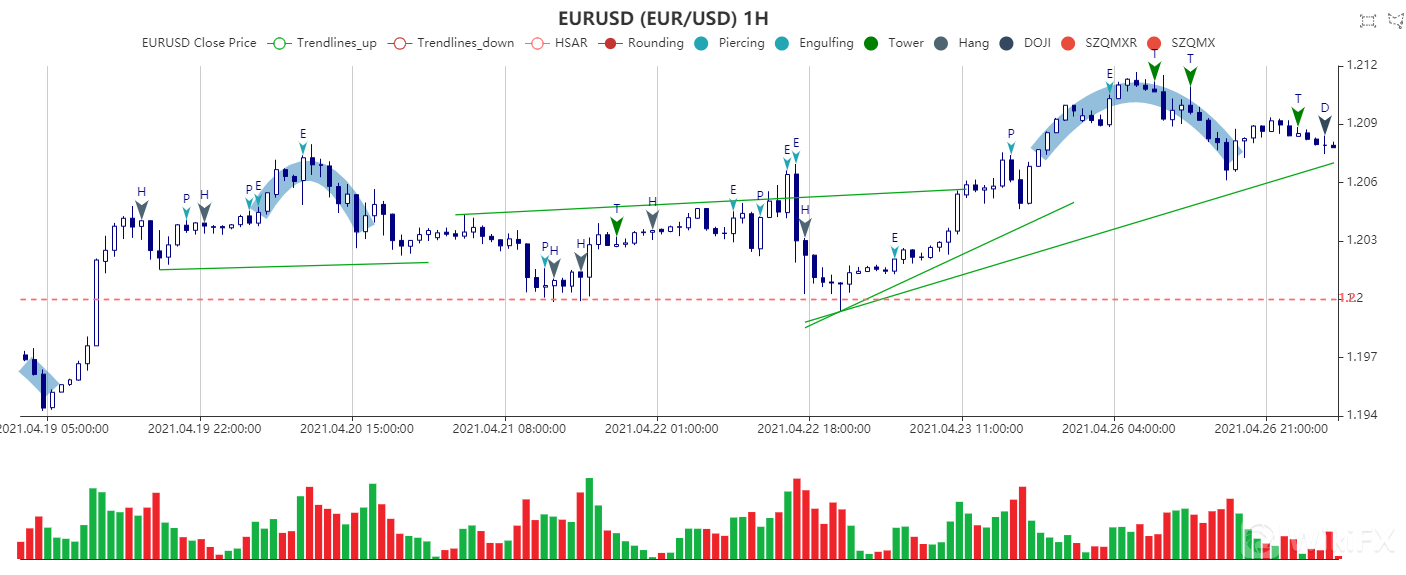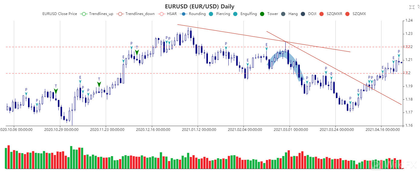 昨日,德国智库IFO公布的数据显示,德国4月IFO商业景气指数录得96.8,预期97.8,前值96.6;德国4月IFO商业预期指数录得99.5,预期101.3,前值100.4;德国4月IFO商业现况指数录得94.1,预期94.4,前值93。对此,第三波疫情和生产瓶颈阻碍了经济复苏,尽管经济上升趋势仍在持续,但有所减弱。此外,美元持续走软,这可能是近期欧元/美元多头无惧一切利空的主因。日线图显示,欧元/美元盘整于1.2060附近,一度创2月26日以来新高触及1.2116,目前汇价动能向上,若突破该水平,则下一个关注水平为1.2170和1.2250。