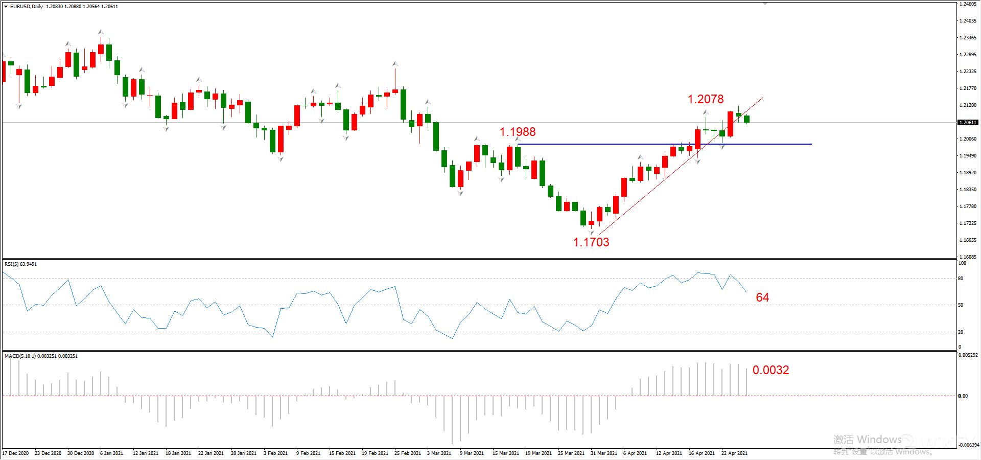 综合判断:在1.2078附近形成顶分形阻力概率较高。