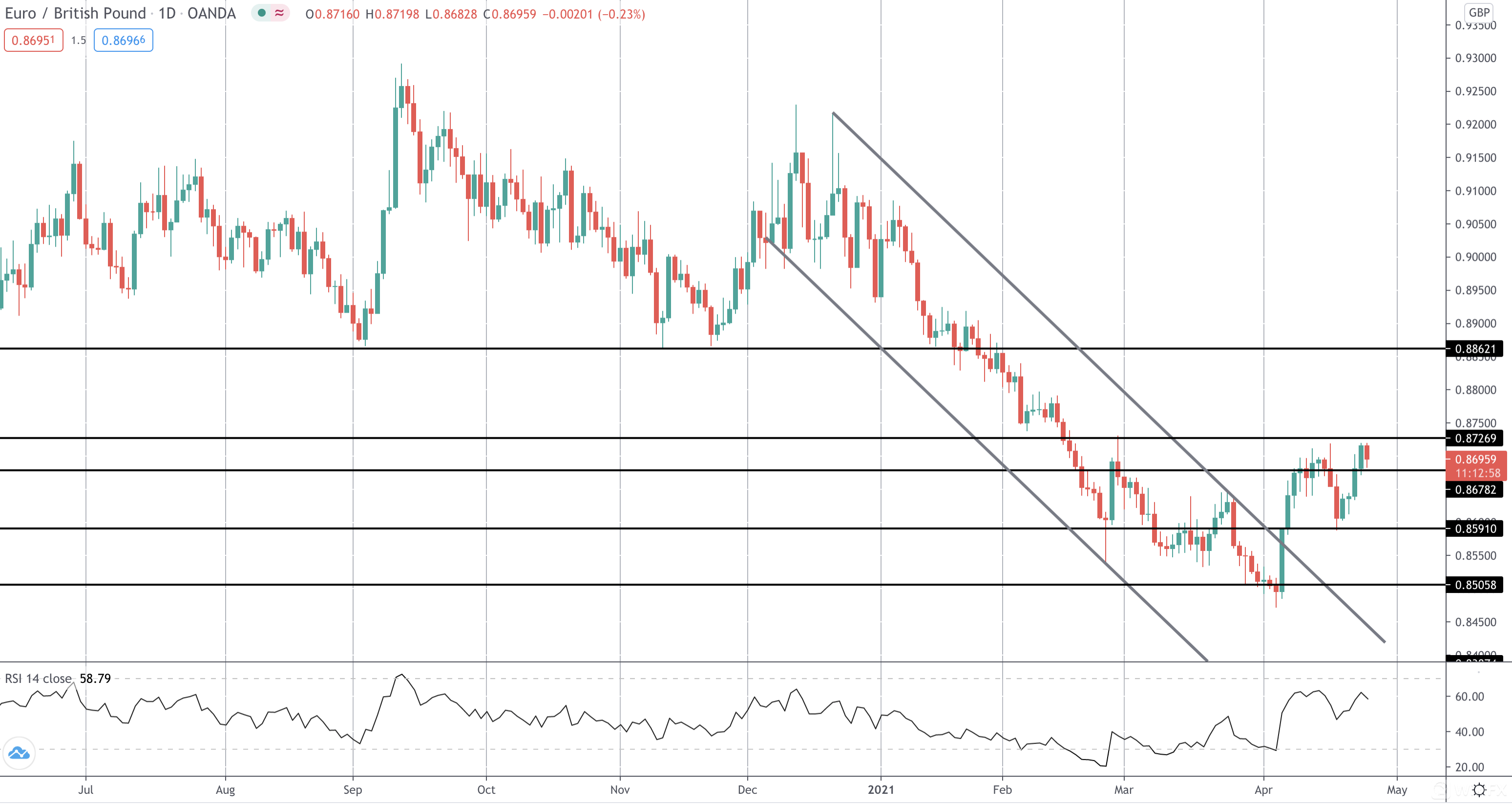 EURGBP 反向头肩成形
