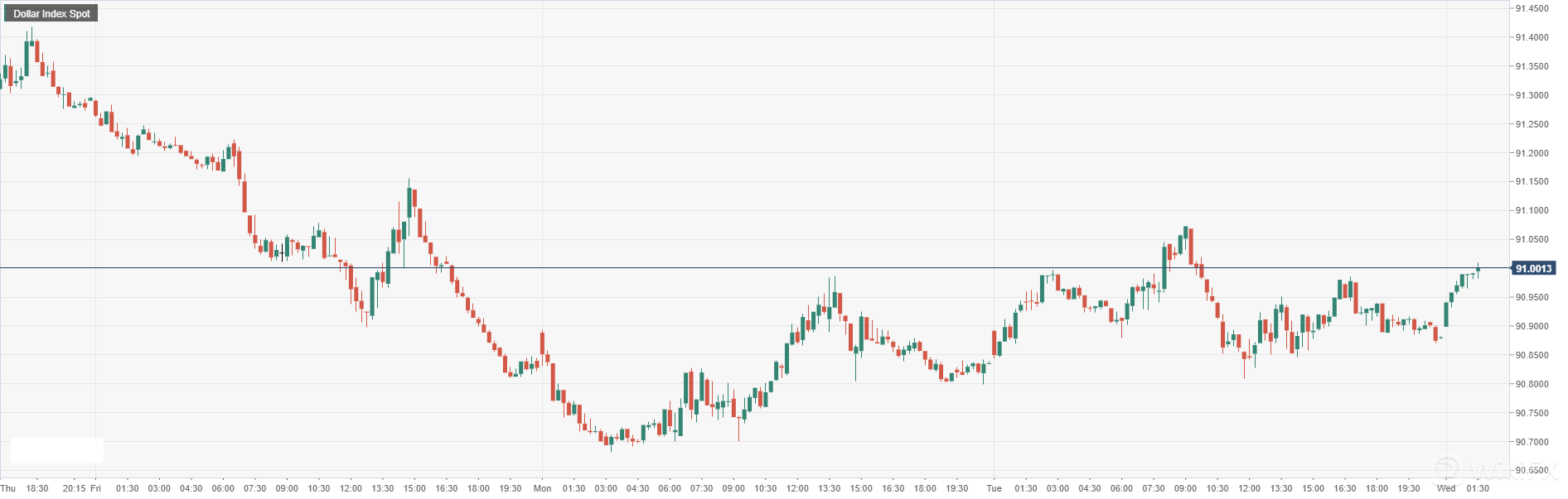 美元指数周二收盘涨跌互现后,今日开盘小幅回升0.06%至91.00,因周三美联储将公布政策决议,交易者及部分市场策略师已预测很可能仍维持宽松立场,美元在短线突破较小。