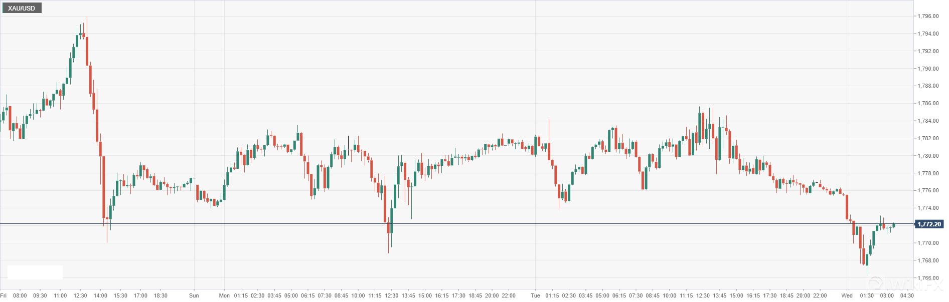 黄金兑美元昨日盘中坡动起伏不大,今日开盘小幅下跌0.4%至1772.20,因昨日美国经济数据改善,使得金价微幅震荡。