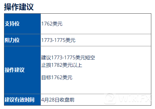 昨日(4月27日),美国财政部标售620亿美元7年期美债,收益率为1.306%,是去年1月以来新高水平,高于上月标售的1.300%。带动美债十年期收益率走高,上涨约6BP,拖累金价震荡走低,终场下跌约5美元或跌幅0.3%,收在约1777美元。