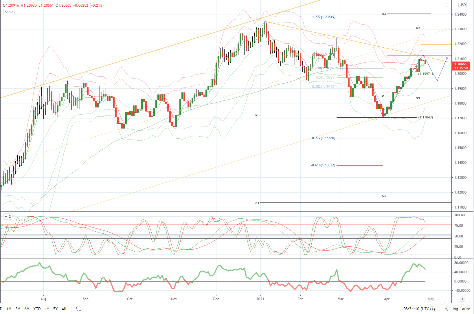 EURUSD 日内偏差 : 看跌下方1.1990看涨上方