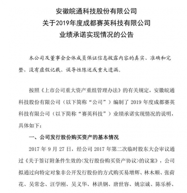 而易增辉的动机可能来自于后者。根据2017年9月皖通科技与易增辉等人签署的《业绩承诺补偿协议》,易增辉等人明确承诺,成都赛英在2017年实现的净利润数不低于3150万元,2017、2018年累积实现的利润数不低于6850万元,即总计不低于1.12亿元。若未能达到,则易增辉及成都赛英团队需向上市公司对未完成业绩部分进行补偿。