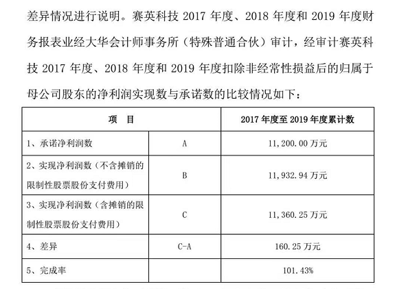 而在造假操作后,其完成率(实际实现利润与承诺数的比例)仅为101.43%,差异仅160.23万元,十分异常。(下图为2020年4月27皖通科技公告)