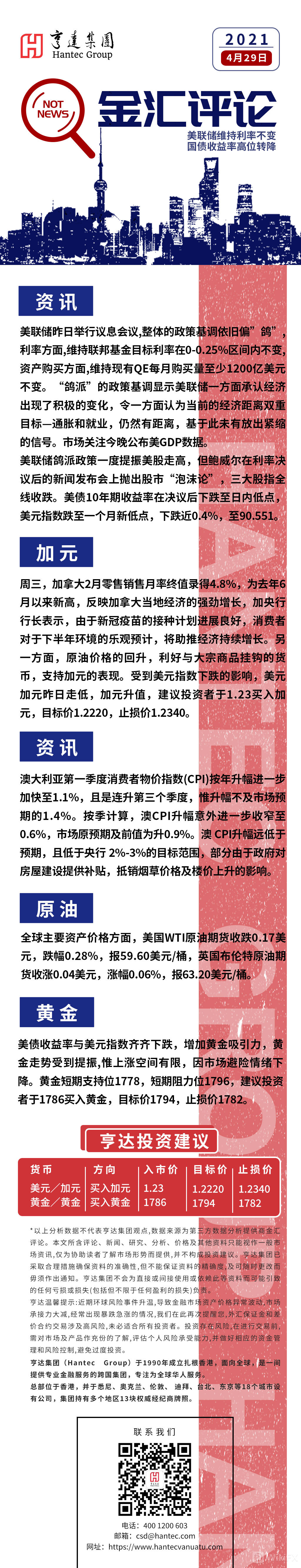 爱维:20210429汇评 | 鮑威爾稱經濟復甦不完全,美元跌45個點黃金漲20美元,聚焦美國第一季度GDP