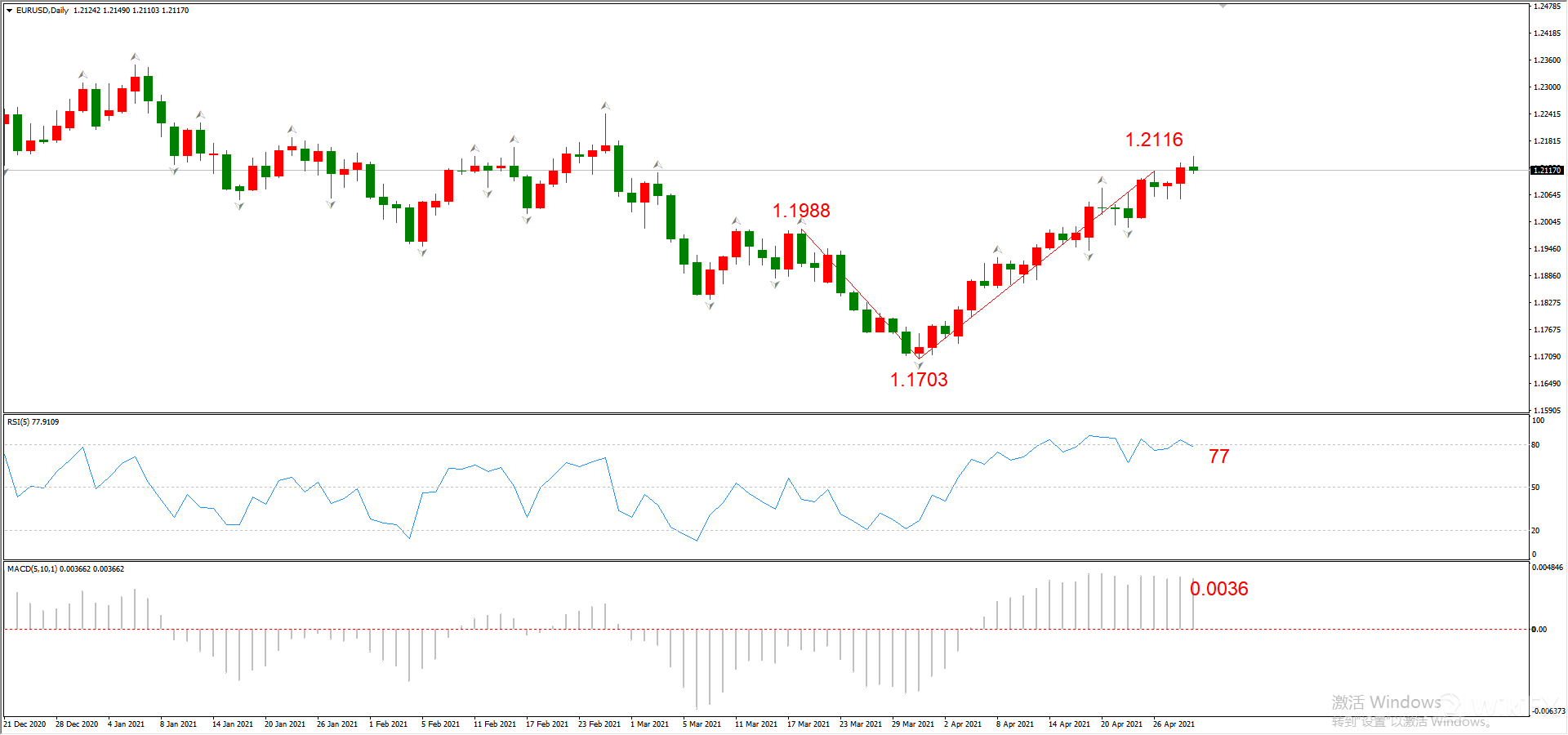 综合判断:在1.2116附近形成顶分形阻力概率较高。
