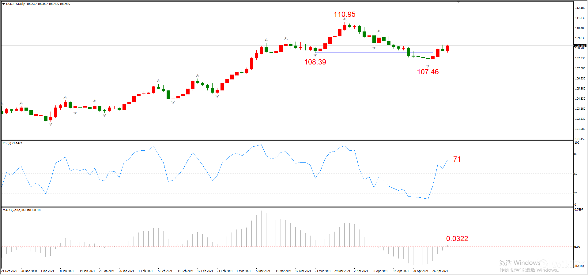 综合判断:上涨触及110.95概率较高。