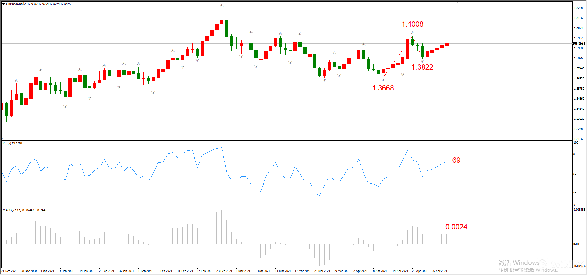 综合判断:上涨触及1.4008概率较高。