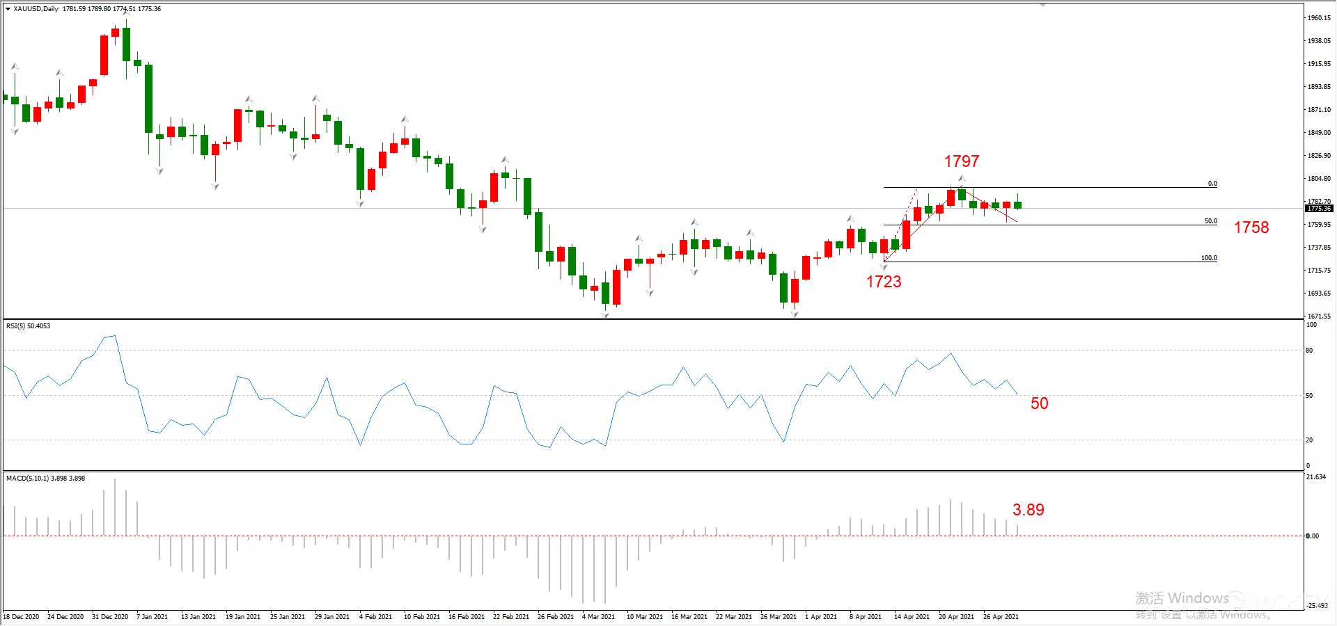 最新勾形:1723~1797~市价,回撤勾形