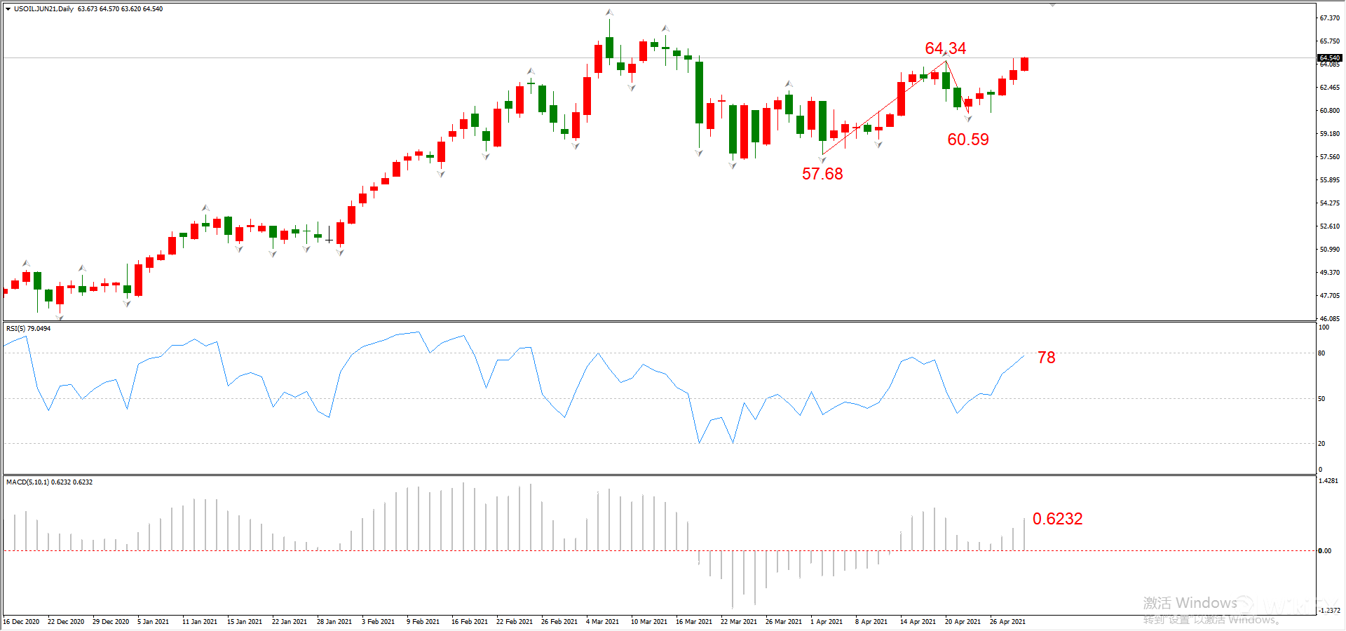 图5,USOIL 2021年5月合约,04月29日 日线周期-ATFX