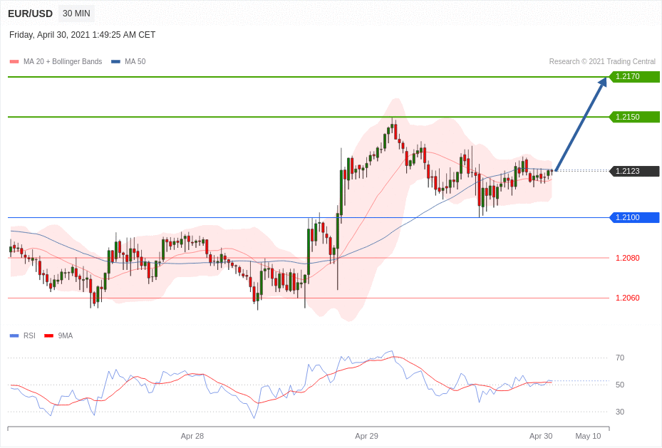 交易策略:在1.2100之上,看涨,目标价位为1.2150,然后为1.2170。