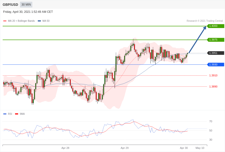 交易策略:在1.3930之上,看涨,目标价位为1.3975,然后为1.4000。