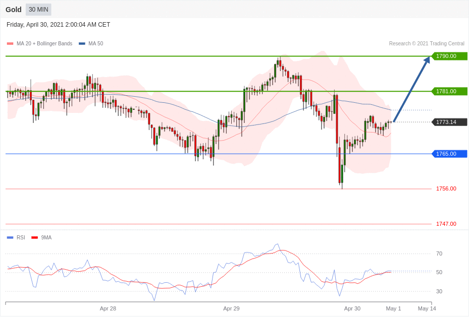交易策略:在1765.00之上,看涨,目标价位为1781.00,然后为1790.00。