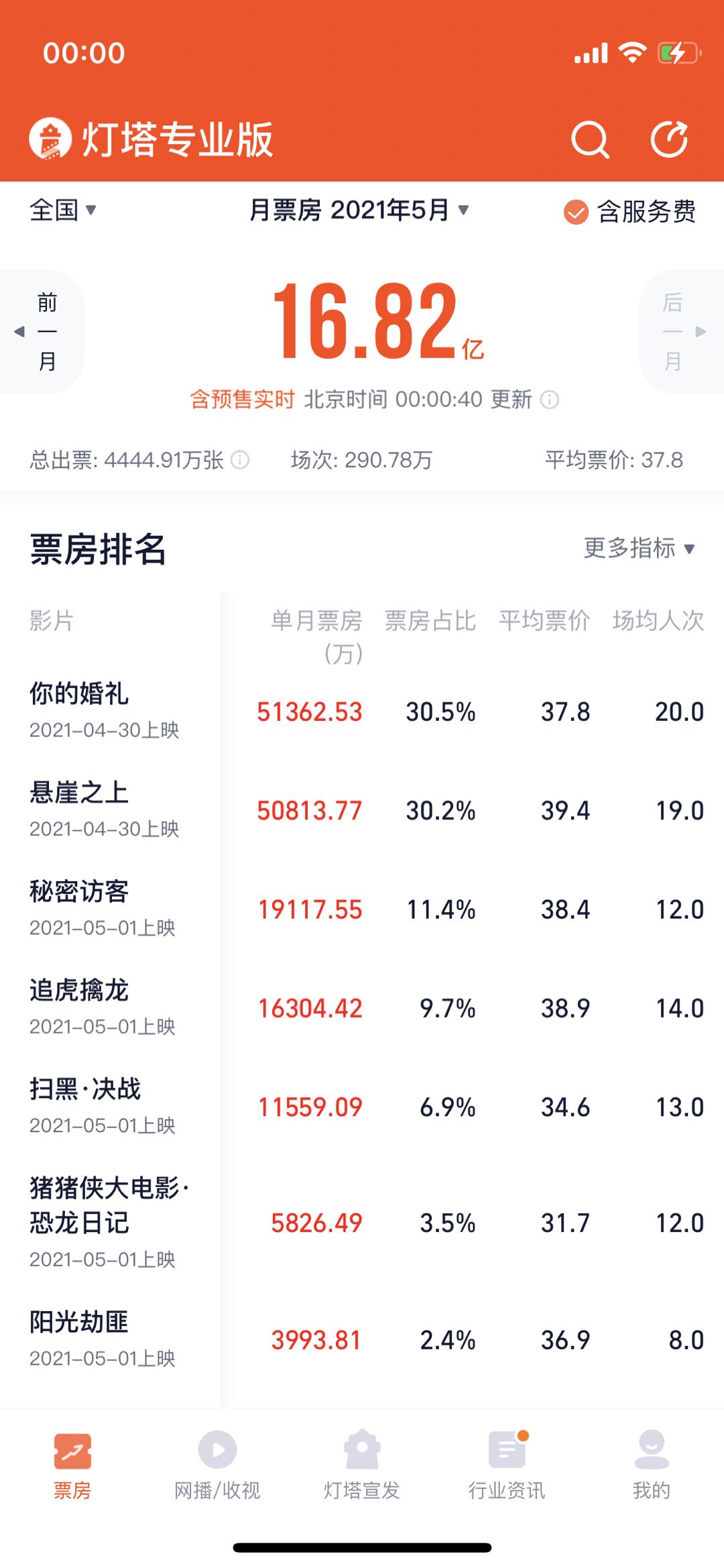 (张猛)牛年加长版五一档落下帷幕,据灯塔专业版数据显示,截至5月5日24时,2021年五一档(5月1日至5月5日)票房超16.82亿,近4445万人次观影,你贡献了多少?