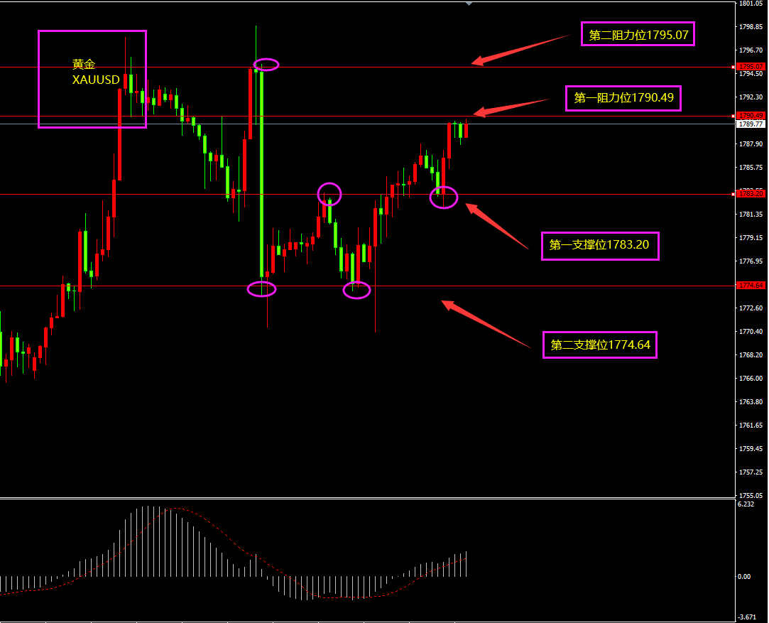 策略分析:第一、二阻力位附近轻仓看空,第一、二支撑位附近轻仓看多。