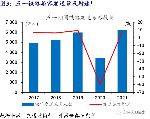 注1:2021年为五一假期前三天数据,其余年份为完整假期数据,增速均按照可比口径计算。