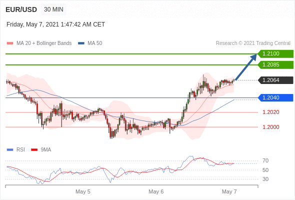 交易策略: 在 1.2040 之上,看涨,目标价位为 1.2085 ,然后为 1.2100 。
