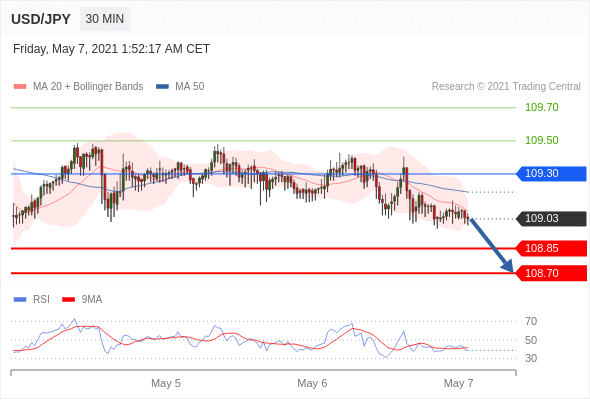交易策略: 在 109.30 之下,看跌,目标价位为 108.85 ,然后为 108.70 。