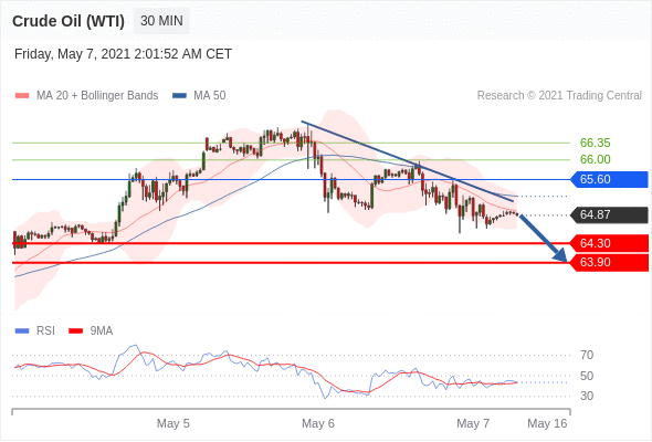 交易策略: 在 65.60 之下,看跌,目标价位为 64.30 ,然后为 63.90 。