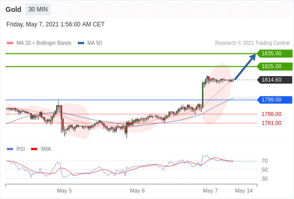 交易策略: 在 1799.00 之上,看涨,目标价位为 1825.00 ,然后为 1835.00 。