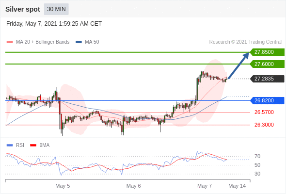 交易策略: 在 26.8200 之上,看涨,目标价位为 27.6000 ,然后为 27.8500 。