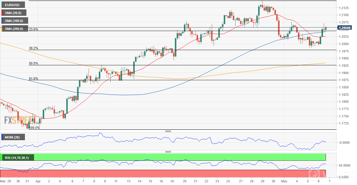 欧元/美元兑美元徘徊在其最近看涨行情的23.6%回撤位上方,此前该货币对在上涨的38.2%回撤位附近遇到买家。4小时图显示该货币对高于其所有移动平均线,该移动平均线以不均匀的强度前进。技术指标仍处于积极水平,尽管动能小幅回落,而相对强弱指数在56附近徘徊,表明购买兴趣有限。该货币对可能突破至周内高点1.2075,而空头可能突破1.1980。