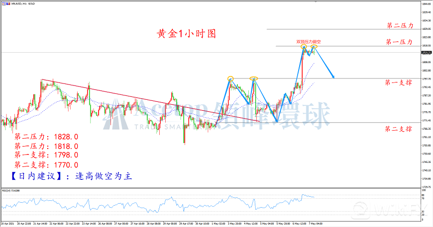 空单:1818.0附近尝试做空,止损1823.0,目标1808.0、1798.0附近。