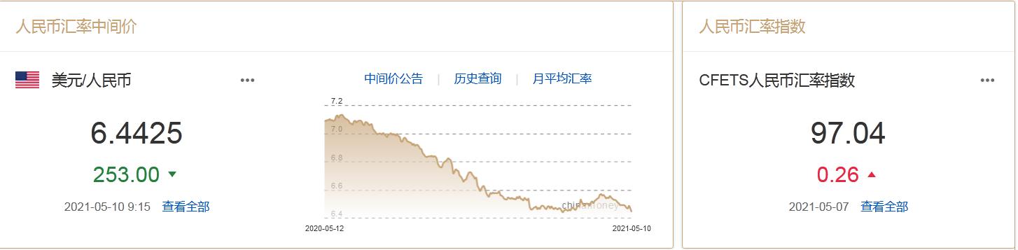 中国外汇交易中心数据显示,10日,人民币对美元中间价报6.4425,上调253点,上一交易日中间价报6.4678,在岸人民币上一交易日收报6.4589。