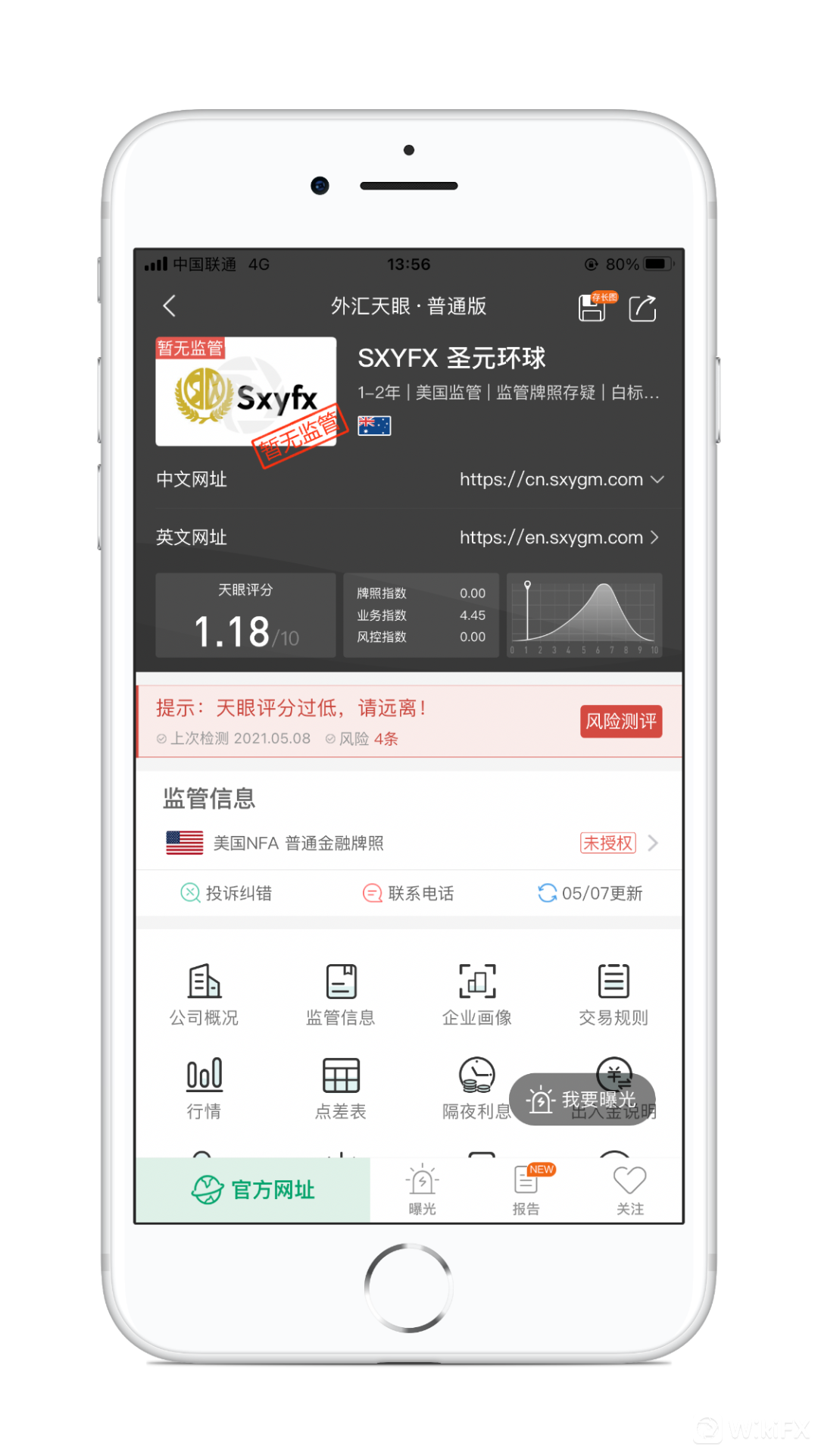 SXYFX 圣元环球,天眼评分1.18分,当前暂无其他实际有效监管,存在巨大风险,建议远离。