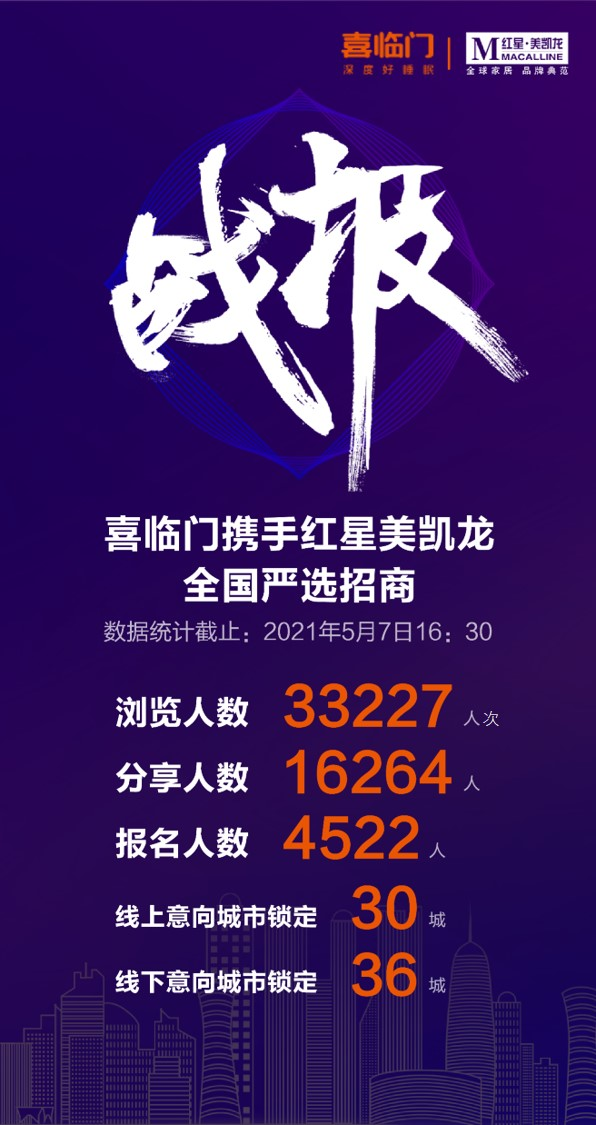 5月7日15:00,喜临门×红星美凯龙全国严选招商直播正式启动,吸引了来自全国的加盟意向者积极参与。