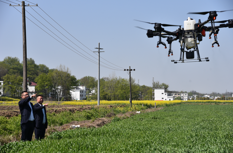 为提高“三农”领域科技运用水平,助力科技兴农,邮储银行江西省彭泽县支行通过发放“惠农设备贷”,加大九江市彭泽县农机设备贷款的投放力度,帮助农民购置现代化农业机械。截至2020年末,邮储银行彭泽县支行累计投放“惠农设备贷”2300万元,服务农户103户。图为该行客户经理回访农户无人机设备使用情况。