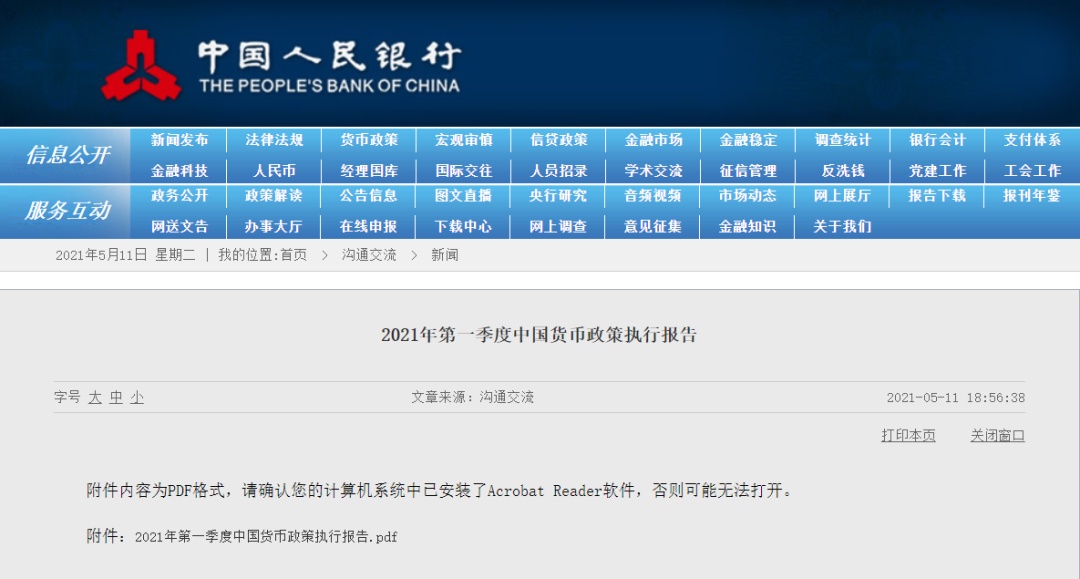 5月11日,中国人民银行发布《2021年第一季度中国货币政策执行报告》(下称“《报告》”),作为观察央行下一阶段货币政策取向的“风向标”,《报告》不仅对下一阶段货币政策操作提出具体目标,包括再次强调“管好货币总闸门”、“保持宏观杠杆率基本稳定”等,也就国内物价趋势、美国国债收益率上涨、现代货币政策框架内涵等热点问题以专栏形式作出回应。