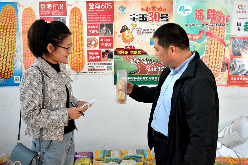 人行山东省鄄城县支行坚持把支持种业高质量发展作为落实中央一号文件精神和支持乡村振兴战略的重要抓手,积极引导辖内金融机构强化金融供给,简化信贷审批流程,切实为种业企业提供有力金融支撑。截至4月末,该行辖内金融机构对种业企业发放贷款4317万元。图为该行员工在鄄城县种子公司了解企业经营及融资需求情况。  本报记者 刘志良 通讯员 刘峰 摄